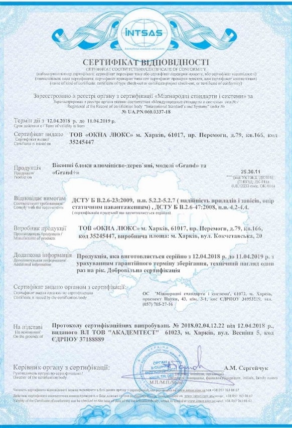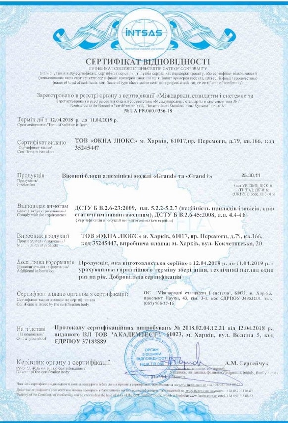 В 2010 году, совместно с итальянской компанией была разработана алюминиево-деревянная система Grand. В процессе создания была разработана новая, уникальная система соединения алюминиевых и деревянных профилей. Патент Украины № 49988 Алюминиевые, деревянные профили изготовлены в Украине, термомосты итальянской компании MAZZER. За эти годы совершенствовали и меняли отдельные элементы, довели до совершенства. И на базе этой системы мы создали и окна Grand+, окна Frame Glass, бронированные окна и алюминиево-деревянные двери.